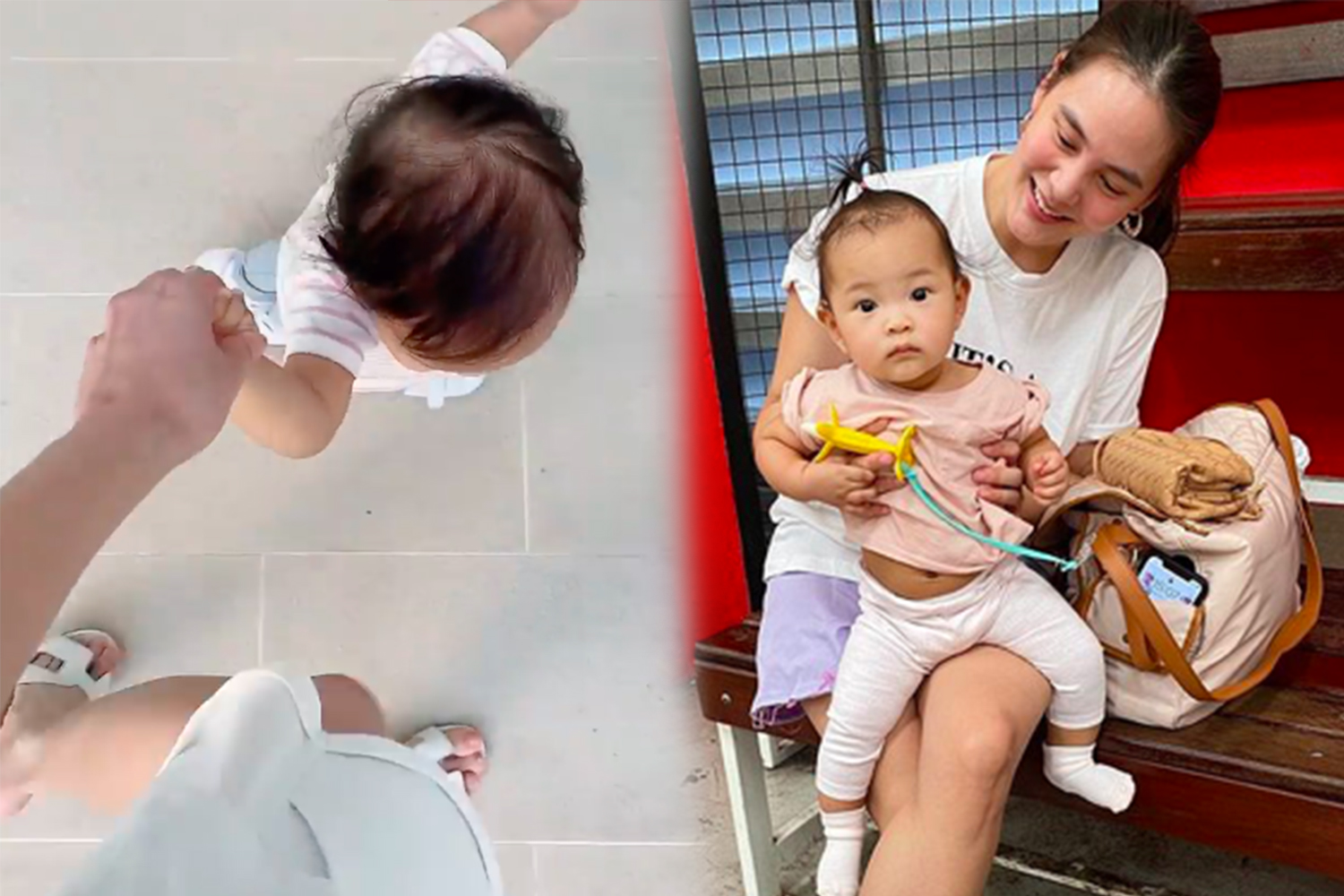 "น้องโนล่า" เดินเก่งแล้ว! จูงมือคุณแม่ "เจนี่" เดินรับอากาศดีๆ ยามเช้า
