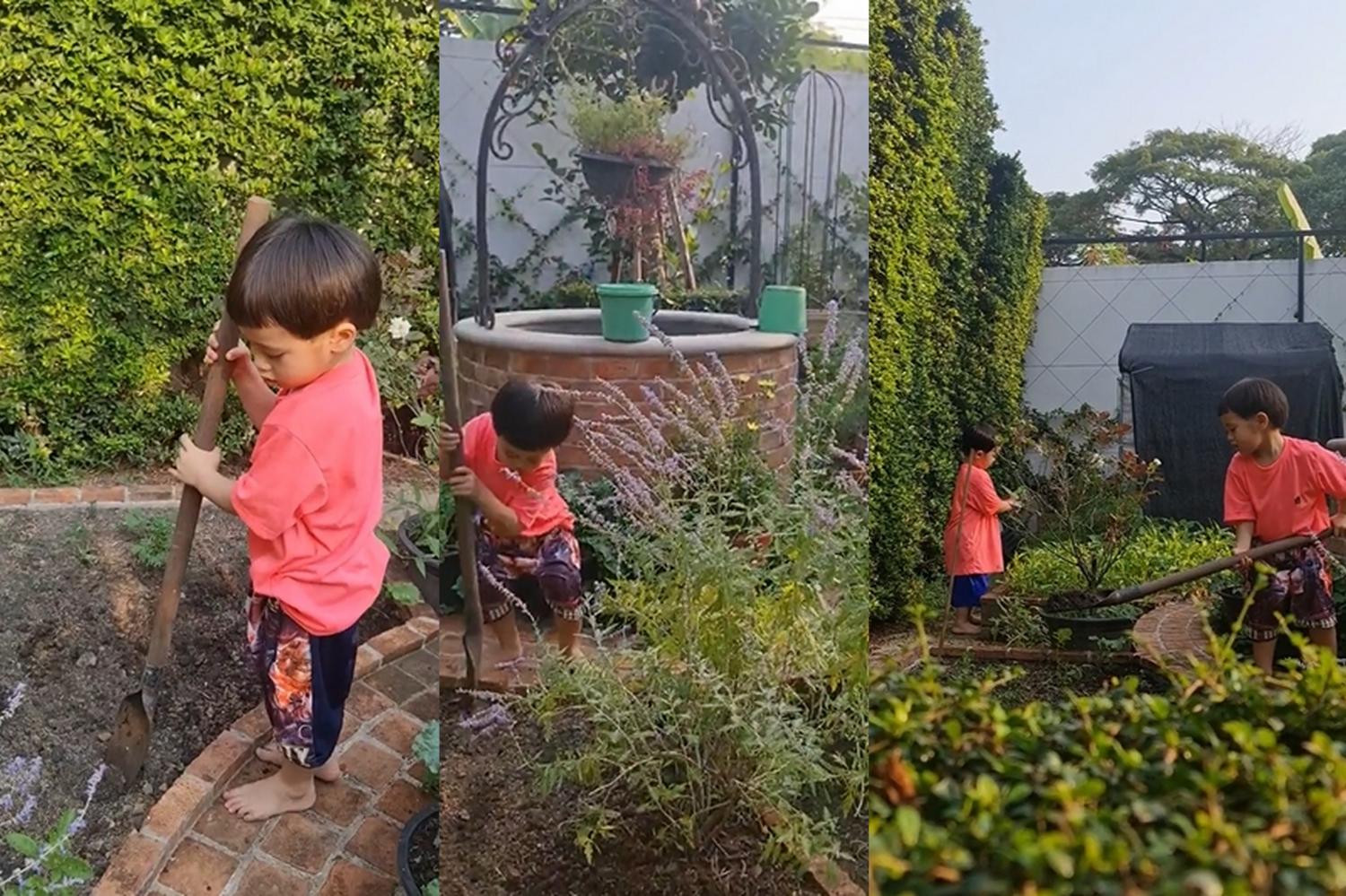 ชมพู่ อารยา เผยคลิปน่ารัก สายฟ้า-พายุ รับบทเกษตรกร ขุดดินรดน้ำสวนบ้านคุณยาย
