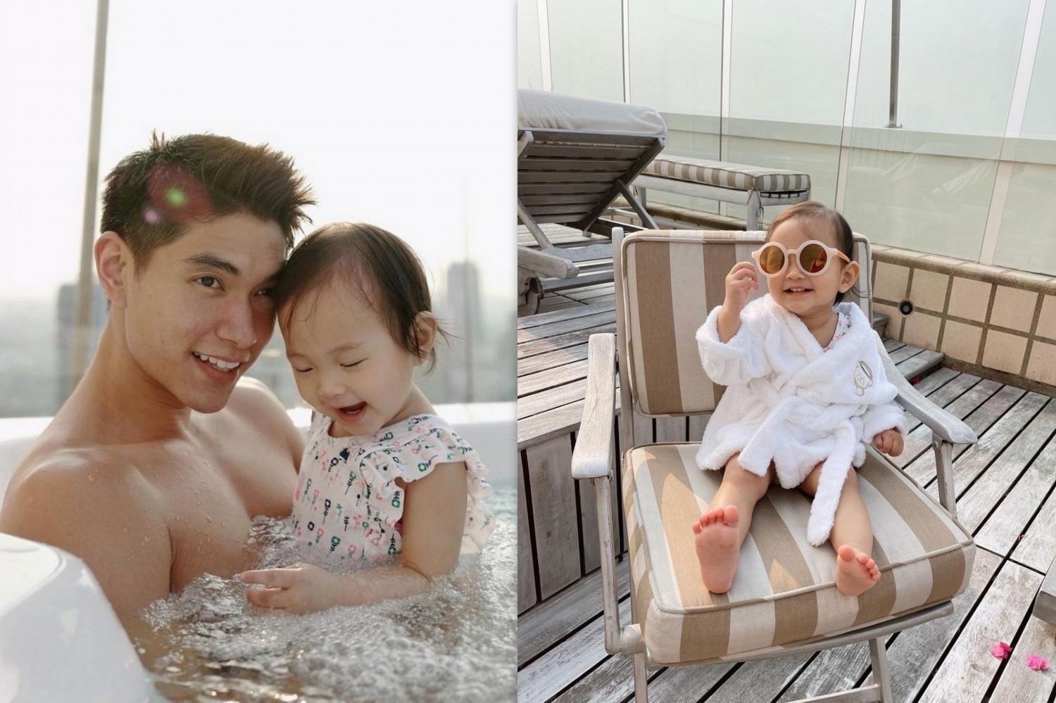 ส่องภาพ น้องโนล่า ฉีกยิ้มสดใสสู้กล้อง เล่นน้ำกับคุณพ่อสุดอบอุ่น