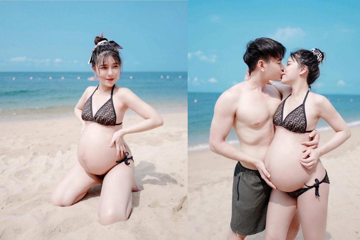 แอปเปิ้ล สีสะเหงียน ขอแซ่บก่อนคลอดนุ่งบิกินี่อวดท้องโตริมหาด พร้อมช็อตหวานจุ๊บสามี ฟลุค จิระ