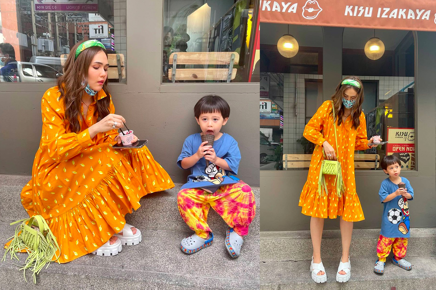 “ชมพู่” พา “น้องสายฟ้า” นั่งกินไอติมดับร้อนริมทางเท้า ชิวสุดๆ