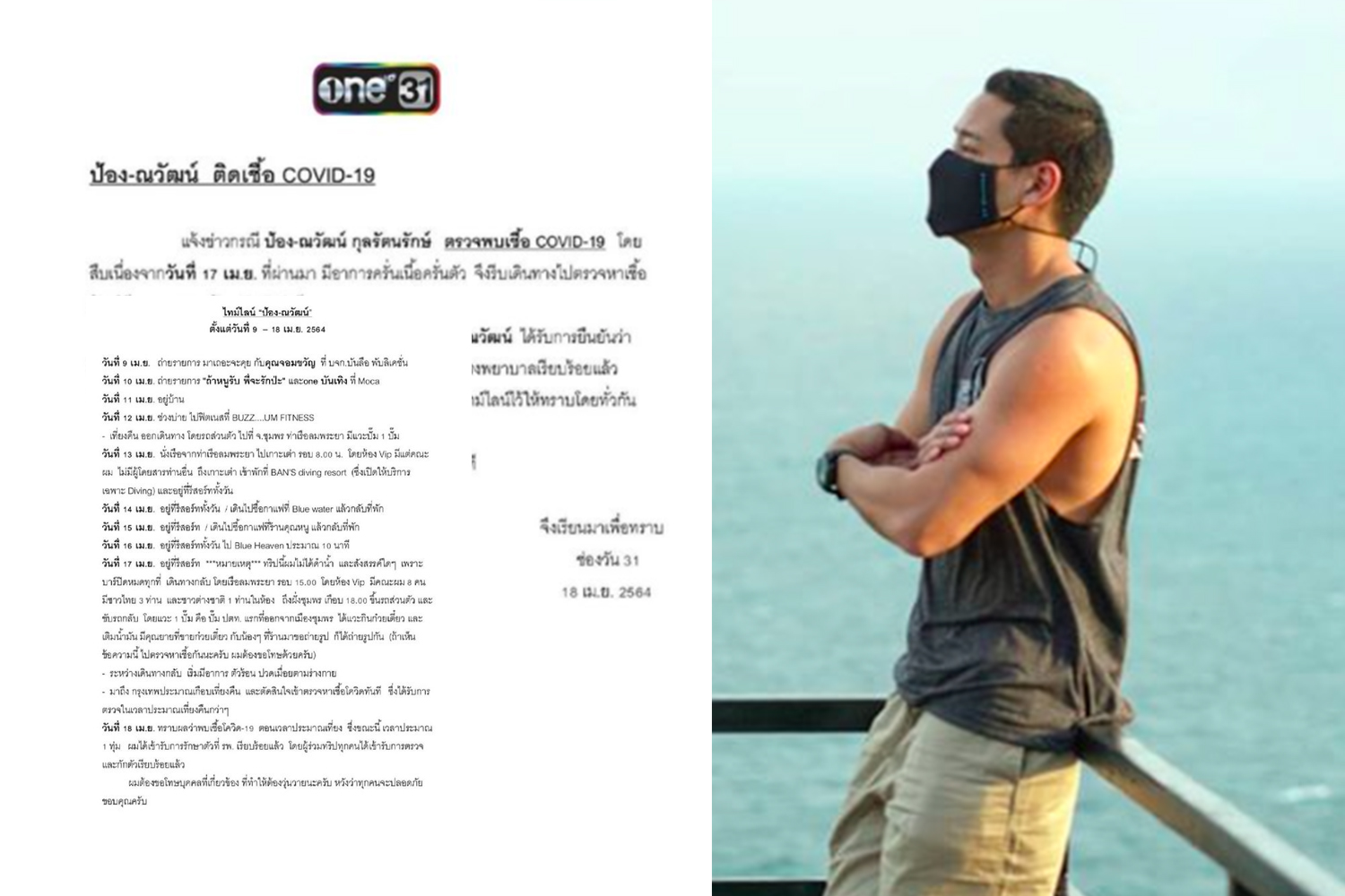 "ป้อง ณวัฒน์" ติดโควิด-19 แจ้งไทม์ไลน์ พร้อมขอโทษผู้เกี่ยวข้อง