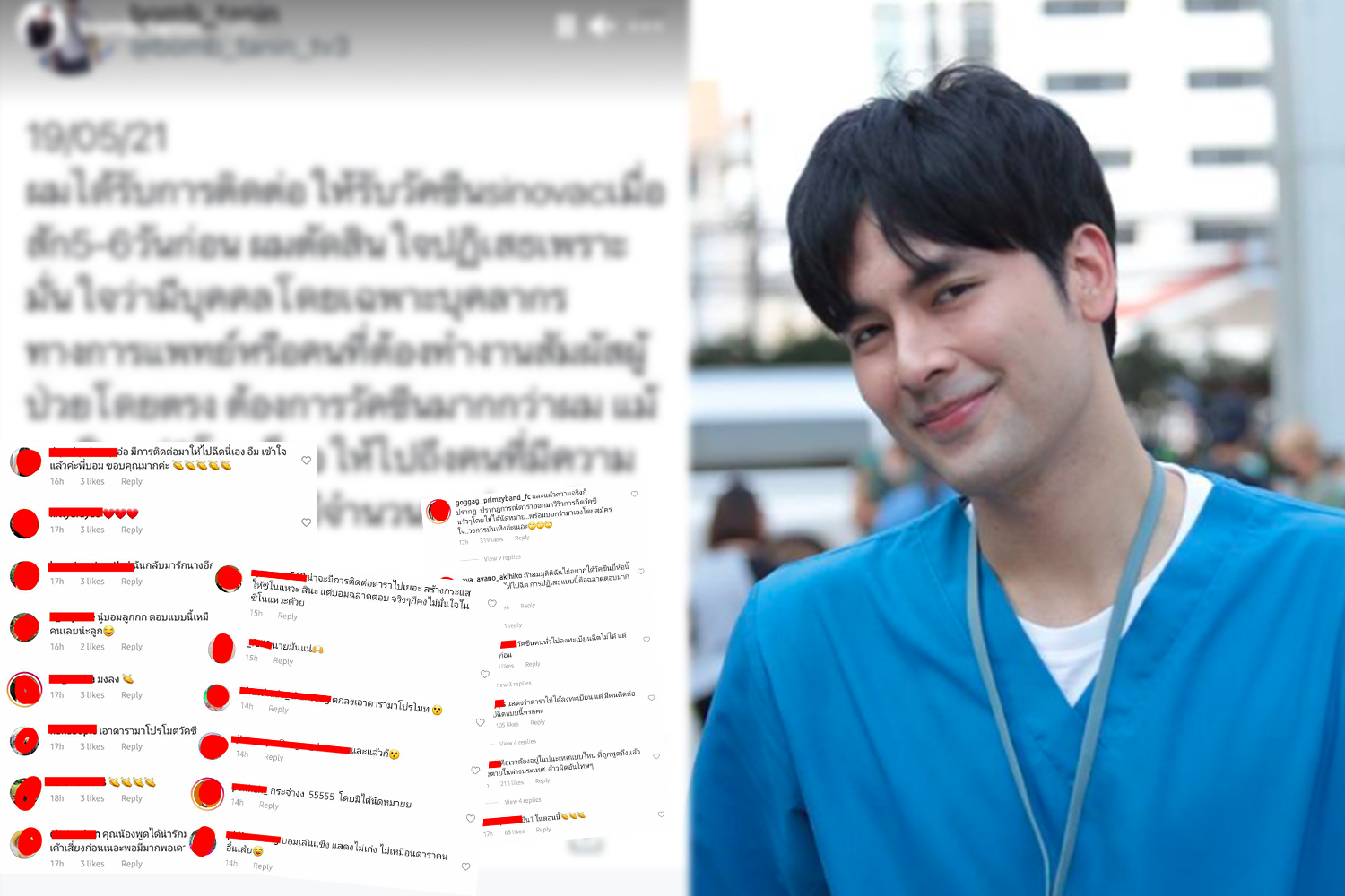 ทำเอาแฟนคลับแห่ชื่นชมนักแสดงหนุ่มกันเป็นจำนวนมาก ที่ออกมาบอกให้ประชาชนได้ทราบกันว่ามีคนติดต่อไปให้ฉีด