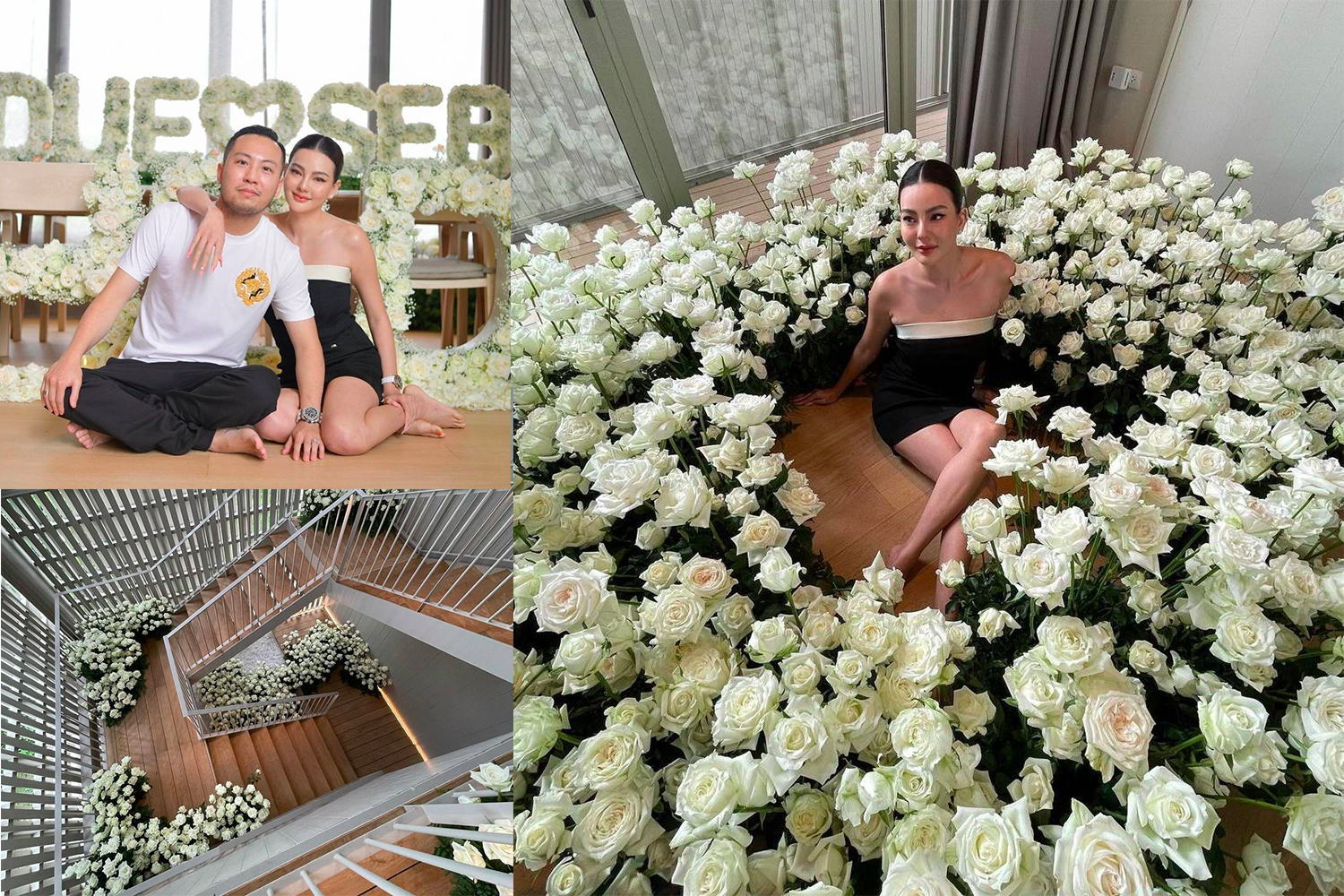 เรียกว่าทุ่มกันสุดตัวจริงๆ ซึ่งเราได้ไปรู้มาว่าสาว “ดิว” นั้น ใช้กุหลาบทั้งหมด 12,000 ดอก ซึ่งเป็นเงินทั้งหมด 450,000 บาท อลังการสมฐานะของทั้งคู่จริงๆ