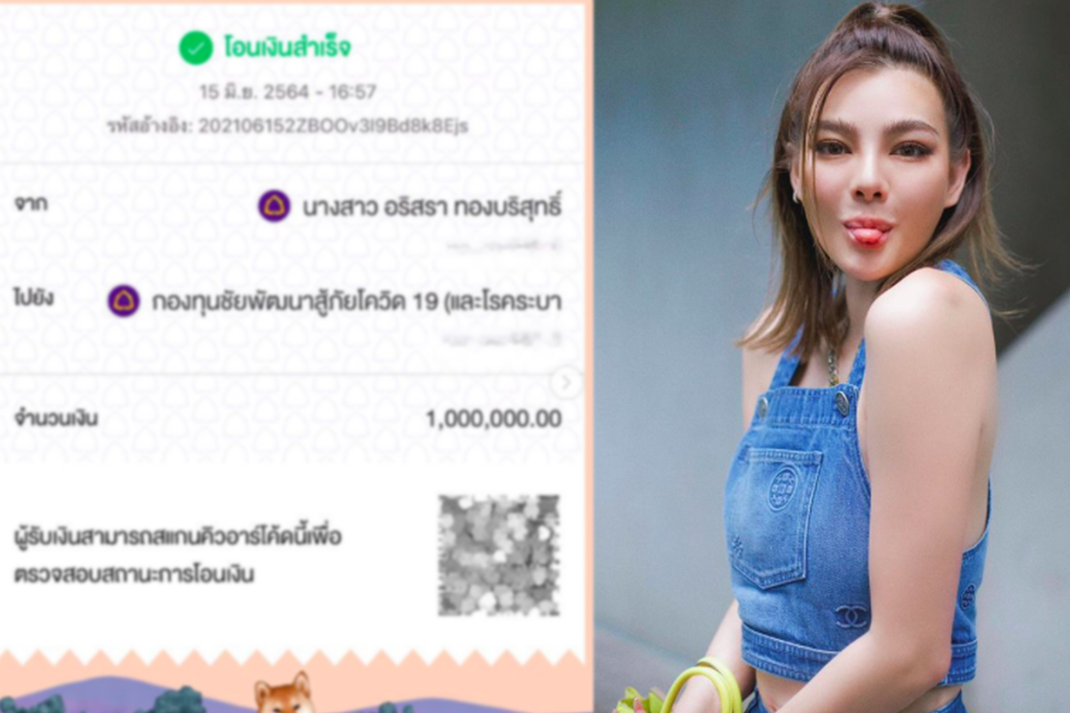 “ดิว อริสรา” บริจาคเงินส่วนตัว 1 ล้านบาท ให้กับกองทุนชัยพัฒนาสู้ภัยโควิด-19