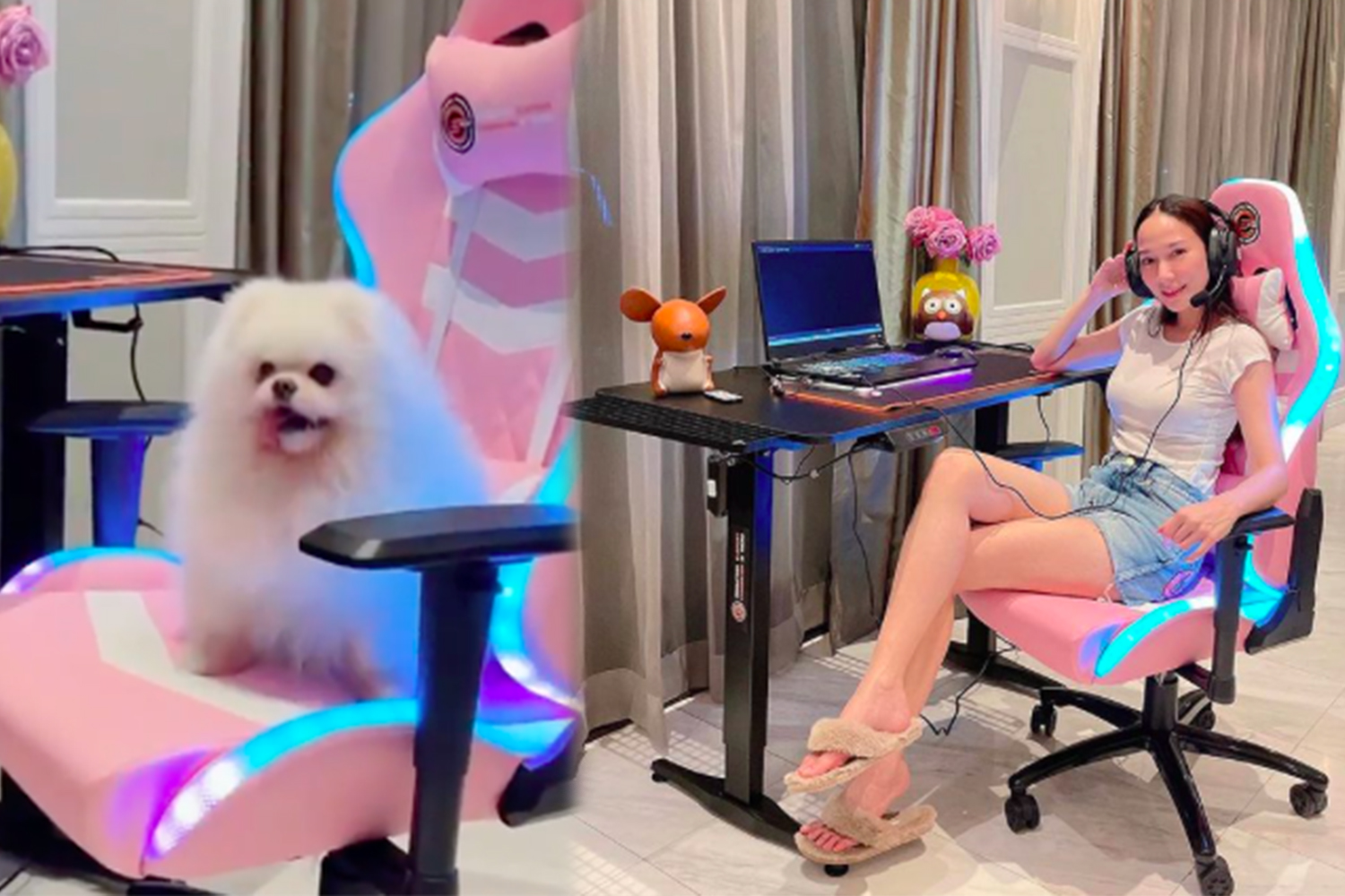 "อั้ม พัชราภา" ไม่เสียชื่อเกมเมอร์ตัวแม่! โต๊ะ-เก้าอี้เล่นเกม จัดเต็มชุดใหญ่ไฟกระพริบ