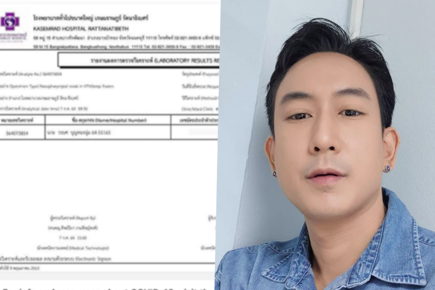 โดยล่าสุดทาง “แพท” ได้โพสต์ผลตรวจโควิด-19 ซึ่งระบุว่า "ไม่พบเชื้อ" พร้อมข้อความว่า "สวัสดีครับ ผลตรวจหาเชื้อโควิด19 ของผมออกมาแล้ววันนี้(8 ก.ค.64) ไม่พบเชื้อครับ แต่เพื่อความปลอดภัยตามมาตรการ ผมจะทำการกักตัวต่อเพื่อเฝ้าดูอาการต่อไปจนครบ 14 วันครับ”