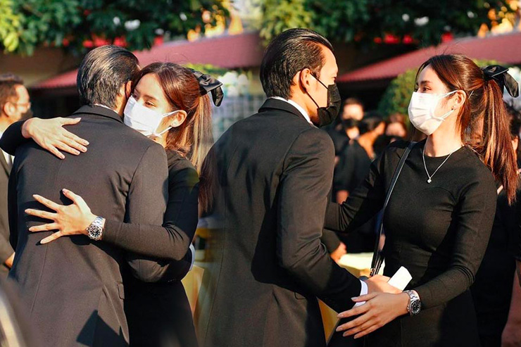 “มะนาว” สวมกอด “ตอง กวินทร์” ให้กำลังใจ หลังร่วมพิธีฌาปนกิจคุณพ่อ