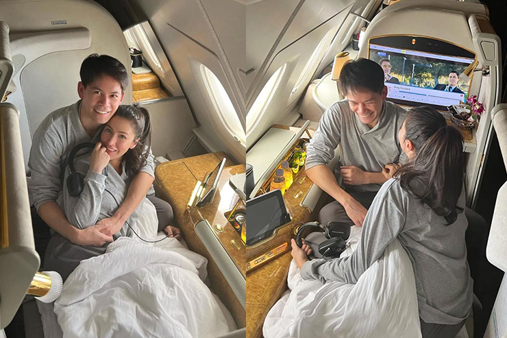 “กรณ์-ศรีริต้า” บินลัดฟ้าฮันนีมูนรอบ 2 หวานฉ่ำกลางอากาศ ที่นั่งเฟิร์สคลาสแคบทันที