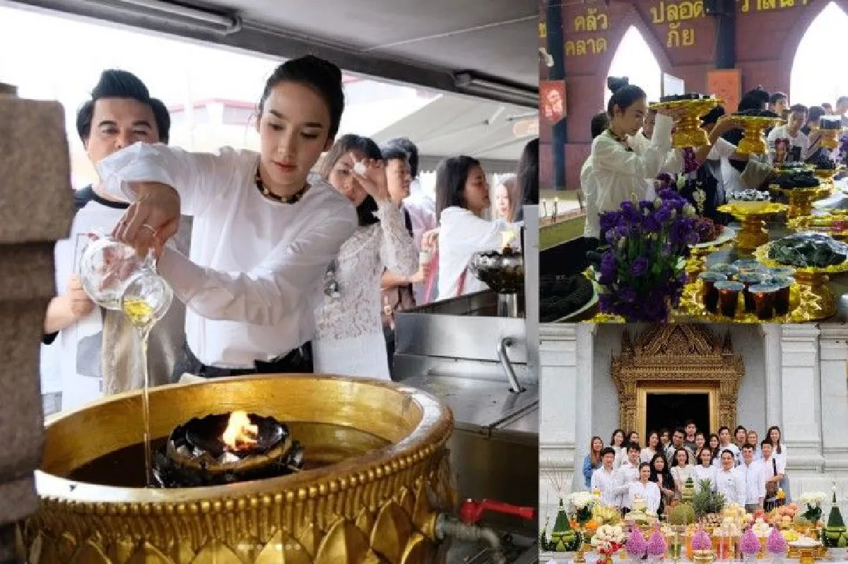 อั้ม พัชราภา นำทีมเพื่อนซี้-เอ ศุภชัย-หมอช้าง ทำบุญที่ศาลหลักเมืองกรุงเทพมหานคร และวัดท่าไม้