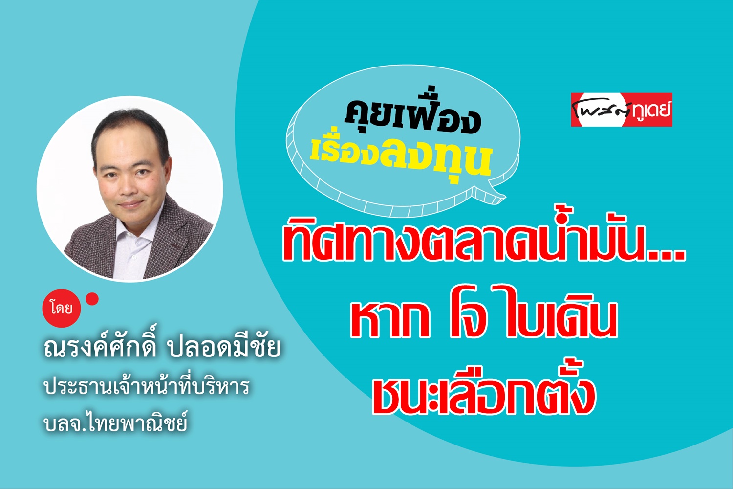 คอลัมน์ คุยเฟื่องเรื่องลงทุน โดย...ณรงค์ศักดิ์ ปลอดมีชัย ประธานเจ้าหน้าที่บริหาร บริษัทหลักทรัพย์จัดการกองทุน ไทยพาณิชย์ จำกัด