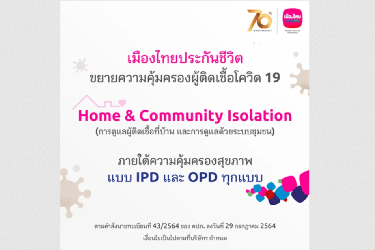 เมืองไทยประกันชีวิต ขยายความคุ้มครองติดโควิด และได้เข้ารับการดูแลรักษาพยาบาลแบบ Home Isolation หรือแบบ Community Isolation