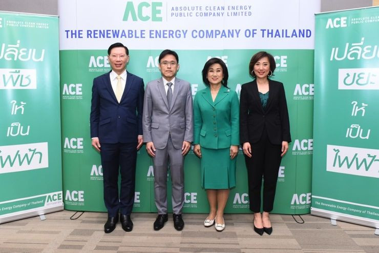 น.ส.จิรฐา ทรงเมตตา ประธานกรรมการบริหาร นายธนะชัย บัณฑิตวรภูมิ ประธานเจ้าหน้าที่บริหาร บริษัท แอ๊บโซลูท คลีน เอ็นเนอร์จี้ (ACE) ดร. วิศิษฐ์ องค์พิพัฒนกุล กรรมการผู้จัดการ บริษัทหลักทรัพย์ (บล.) ทรีนีตี้ ในฐานะที่ปรึกษาทางการเงินและผู้จัดการการจัดจำหน่ายและรับประกันการจำหน่ายร่วม และน.ส.วีณา เลิศนิมิตร กรรมการ บล. ไทยพาณิชย์ ในฐานะ Sole Bookrunner และผู้จัดการการจัดจำหน่ายและรับประกันการจำหน่ายร่วม แนะนำธุรกิจ จุดแข็ง และโอกาสการเติบโตของ ACE ซึ่งเป็นบริษัทผู้ผลิตและจำหน่ายไฟฟ้าจากพลังงานหมุนเวียน และเป็นผู้นำด้านพลังงานสะอาด
