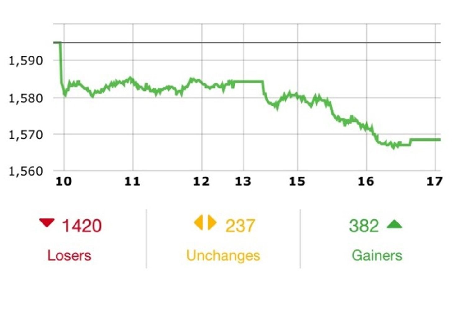 ทั้งนี้ ช่วงบ่ายหลังจากดัชนีไม่สามารถยืนได้ในระดับ 1,580 จุด ทำให้มีแรงขายออกมามากขึ้น ส่งผลให้ SET ช่วงบ่ายไหลลงไปค่อนข้างมาก แม้ว่าตลาดหุ้นไทยจะมีหุ้นในกลุ่มพลังงานที่ได้รับประโยชน์จากปัจจัยกดดันในตะวันออกลาง แต่ไม่สามารถทนทานแรงขายของหุ้นกลุ่มอื่น ๆ ได้ ขณะเดียวกันหุ้น AOT ยังได้รับแรงกดดันเสริมจากโรคระบาดใหม่ในจีนที่คาดว่าจะกระทบกับการท่องเที่ยวและการเดินทาง