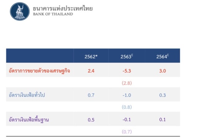 ธปท.หั่นจีดีพีไทยปีนี้ติดลบ5.3%