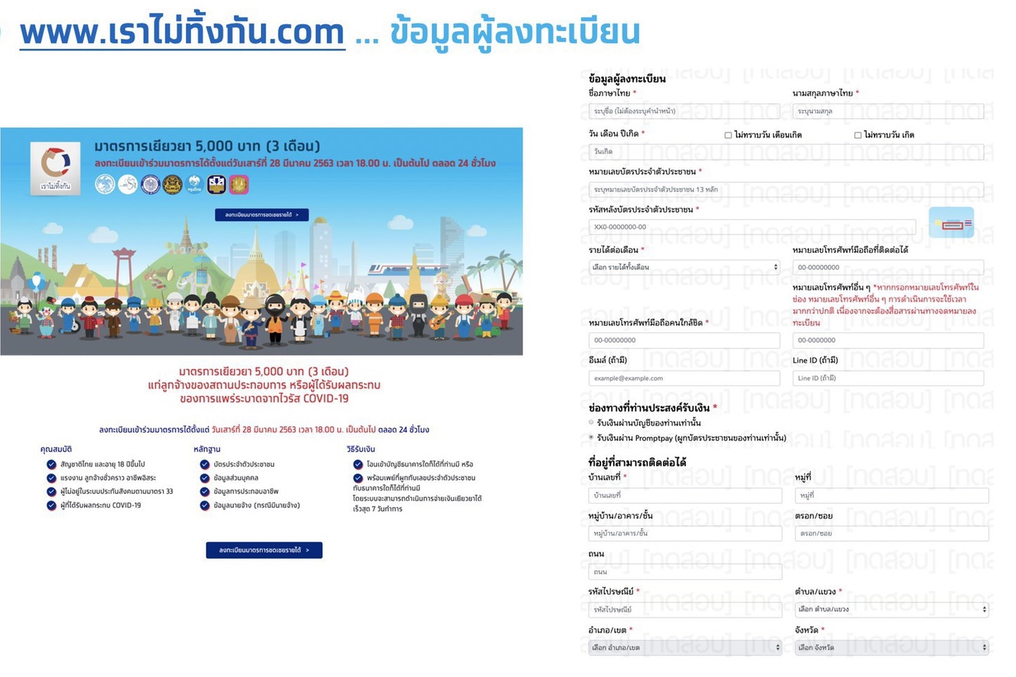 กระทรวงการคลัง เปิดหน้าเว็ป WWW.เราไม่ทิ้งกัน.com เพื่อให้ผู้สนใจเข้าไปศึกษาข้อมูลรายเอียดต่างๆ ในการลงทะเบียนรับเงินช่วยเหลือตกงาน 5,000 บาท เป็นเวลา 3 เดือน