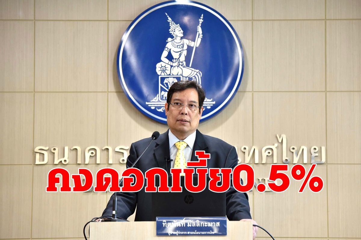 กนง. มีมติเอกฉันท์คงอัตราดอกเบี้ยนโยบาย 0.5%