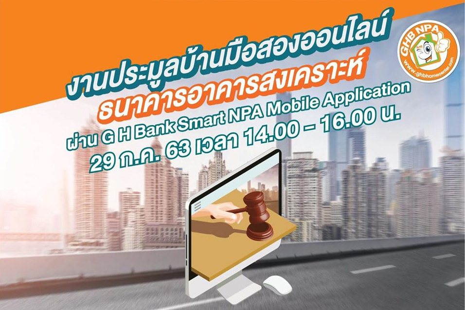 ธนาคารอาคารสงเคราะห์ (ธอส.) จัดประมูลบ้านมือสองออนไลน์ครั้งแรกผ่าน Application : G H Bank Smart NPA โดยลูกค้าสามารถลงทะเบียนเข้าร่วมประมูลออนไลน์ ได้ตั้งแต่วันนี้จนถึงวันที่ 29 กรกฎาคม 2563 เวลา 12.00 น. และเริ่มต้นการประมูลในวันเดียวกัน เวลา 14.00 -16.00 น. โดยคัดเลือก 7 ทรัพย์เด่นทำเลดี ราคาเริ่มต้นประมูลลดสูงสุด 20% จากราคาปกติ ผู้ชนะประมูลรับสิทธิ์ผ่อนดาวน์ 0% นานสูงสุด 60 เดือน หรือเทดาวน์แล้วยื่นกู้ทันทีผ่อนได้นานสูงสุด 40 ปี และฟรีค่าประเมินราคาทรัพย์สินอีกด้วย
