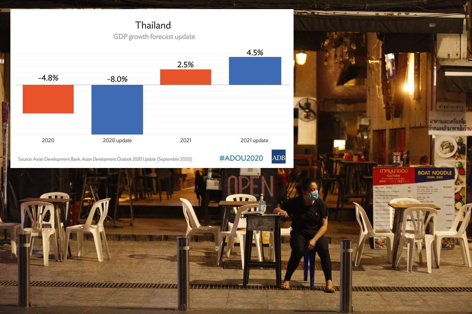 เอดีบีระบุว่า แม้ไทยจะสามารถควบคุมการแพร่ระบาดของเชื้อไวรัสโควิด-19 ได้ดี ทำให้มีการผ่อนคลายมาตรการควบคุมการแพร่ระบาด และกิจกรรมทางเศรษฐกิจเริ่มกลับมาฟื้นตัว แต่ผลกระทบจากการแพร่ระบาดดังกล่าวส่งผลต่อเศรษฐกิจมากกว่าที่เคยคาดกาณ์ไว้เมื่อเดือนเม.ย.ที่ผ่านมา