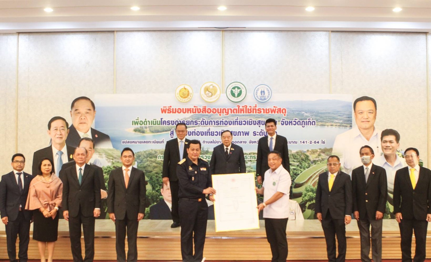 กรมธนารักษ์ กระทรวงการคลัง ส่งมอบหนังสือที่ราชพัสดุ กว่า 141 ไร่ สนับสนุนกระทรวงสาธารณสุข พัฒนาโครงการยกระดับการท่องเที่ยวเชิงสุขภาพจังหวัดภูเก็ตสู่เมืองท่องเที่ยวเชิงสุขภาพระดับโลก กระตุ้นความเชื่อมั่น ดึงการท่องเที่ยวฟื้นเศรษฐกิจไทย