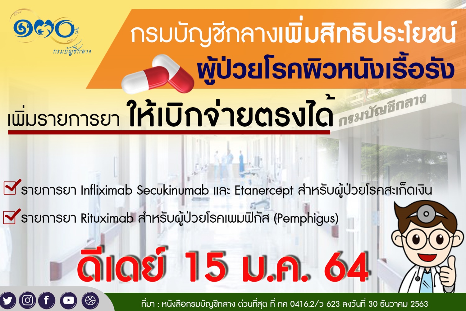 กรมบัญชีกลางเพิ่มสิทธิประโยชน์ผู้ป่วยโรคผิวหนังเรื้อรัง ดีเดย์ 15 ม.ค. 64