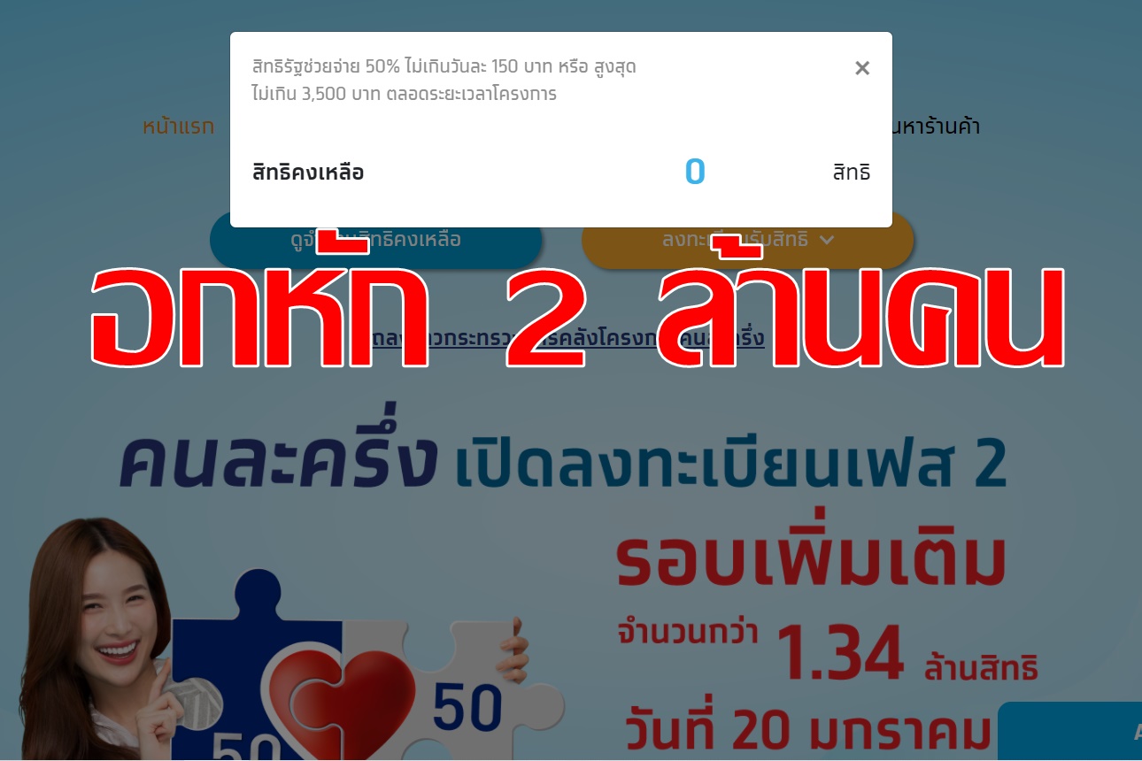 นายกฤษฎา จีนะวิจารณะ ปลัดกระทรวงการคลัง เปิดเผยว่า การลงการลงทะเบียนคนละครึ่ง 1.34 ล้านสิทธิ เพื่อรับวงเงินใช้จ่าย 3,500 บาท ในวันที่ 20 ม.ค. 2564 ตั้งแต่เวลา 06.00 น. เต็มแล้วเมื่อเวลา 06.09 น. หรือ 9 นาที เนื่องจากมีผู้สนใจจำนวนมาก มีคนเข้ามาในระบบรอก่อน 06.00 น. ถึงกว่า 3 ล้านคน ส่งผลให้ทำมีผู้พลาดหวังไม่ได้สิทธิไปประมาณ 2 ล้านคน