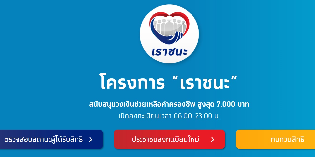 วันที่ 8 ก.พ. 2564 www.เราชนะ.com เปิดให้ผู้ลงทะเบียนโครงการเราชนะเพื่อรับเงินเยียวยา 7,000 บาท แต่ไม่ผ่านสิทธิ ให้สามารถลงทะเบียนทบทวนสิทธิได้แล้ว