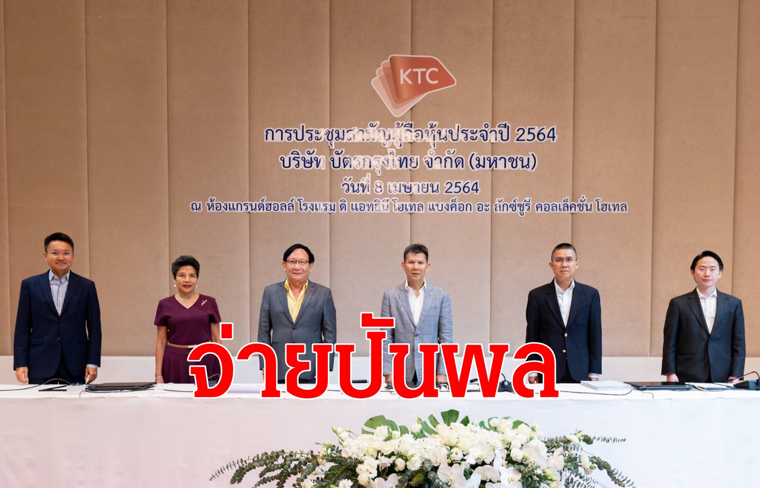วันนี้ (8 เมษายน 2564) นายระเฑียร ศรีมงคล กรรมการและประธานเจ้าหน้าที่บริหาร “เคทีซี” หรือ บริษัท บัตรกรุงไทย จำกัด (มหาชน) พร้อมด้วยคณะกรรมการบริษัทฯ ได้จัดประชุมสามัญผู้ถือหุ้นประจำปี 2564 โดยที่ประชุมฯ มีมติอนุมัติจ่ายเงินปันผลในอัตราหุ้นละ 0.88 บาท ภายในวันที่ 7 พฤษภาคม 2564 รวมเงินปันผลทั้งสิ้น 2,268,933,982 บาท