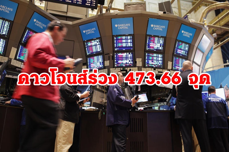 ดาวโจนส์ปิดร่วง 473.66 จุด นักลงทุนวิตกเงินเฟ้อ ด้านราคาน้ำมันเพิ่มขึ้น 36 เซนต์ ขณะที่ทองคำ ลบ 1.50 ดอลลาร์