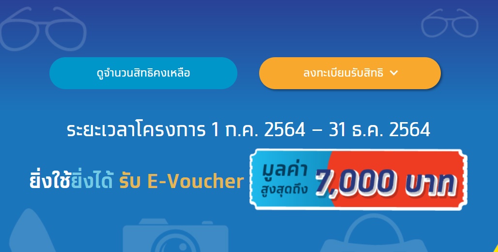 ตัวอย่างการคำนวณ e – Voucher จากยอดใช้จ่ายรวม 45,000 บาท ยอดใช้จ่าย (บาท) ร้อยละ e - Voucher e – Voucher ที่ได้รับ (บาท) 20,000 ร้อยละ 10 x (20,000) 2,00025,000 ร้อยละ 10x (20,000) 2,000 ร้อยละ 15 x (5,000) 750ยอดรวม 45,000 4,750 สำหรับผู้ประกอบการร้านค้าที่สนใจเข้าร่วมโครงการยิ่งใช้ยิ่งได้และมีคุณสมบัติเป็นไปตามที่กำหนด ได้แก่ ร้านค้าทั่วไป ร้านอาหารและเครื่องดื่ม ร้านธงฟ้า ร้าน OTOP ผู้ประกอบการบริการนวด สปา ทำผมทำเล็บ ที่จดทะเบียนภาษีมูลค่าเพิ่มสามารถลงทะเบียนเข้าร่วมโครงการได้ตั้งแต่วันที่ 14 มิถุนายน 2564 เวลา 06.00 น. – 22.00 น.เป็นต้นไป ผ่านเว็บไซต์ www.ยิ่งใช้ยิ่งได้.com หรือสาขาธนาคารกรุงไทยฯ โดยจากข้อมูล ณ วันที่ 20 มิถุนายน 2564 เวลา 22.00 น. มีจำนวนผู้ประกอบการร้านค้าที่ลงทะเบียนเข้าร่วมโครงการกว่า 34,315 ราย