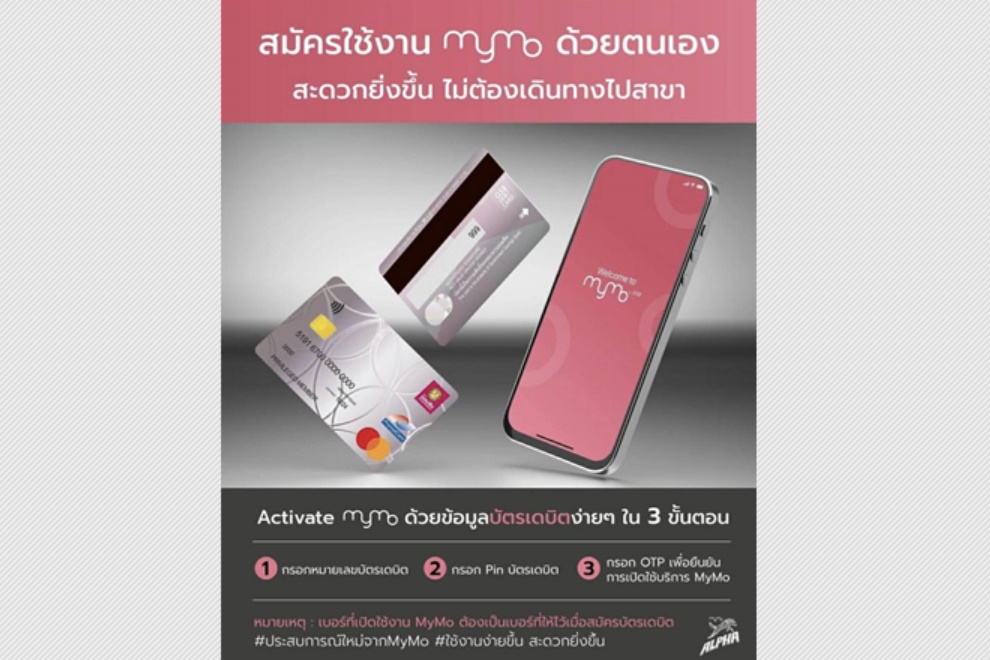 ทั้งนี้ ลูกค้าบัตรเดบิตที่ยังไม่มีแอป MyMo สามารถดาวน์โหลดแอป MyMo ด้วยสมาร์ทโฟน ซึ่งรองรับได้ทั้งระบบปฏิบัติการ IOS / Android และ HUAWEI จากนั้นเปิดใช้บริการแอป MyMo ด้วยข้อมูลบัตรเดบิตใน 3 ขั้นตอนง่าย ๆ คือ