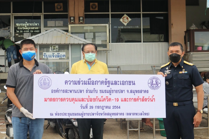 นายปรีดา ยังสุขสถาพร ผู้อำนวยการองค์การสะพานปลา (FMO) ได้เข้าหารือกับนายจุมพล ฆนวารี ประธานชมรมผู้ขายปลาจังหวัดสมุทรสาคร(ตลาดทะเลไทย) และนายสมพจน์ ยิ่งยวด ที่ปรึกษาชมรมฯ เพื่อระดมความคิดในการแก้ปัญหา และป้องกันการระบาดของโรคโควิด–19 เนื่องจากองค์การสะพานปลา และชมรมผู้ขายปลาจังหวัดสมุทรสาคร (ตลาดทะเลไทย) เป็นพื้นที่ ที่มีการซื้อ-ขายสินค้าสัตว์น้ำเหมือนกัน มีจำนวนผู้คนเข้า-ออกจำนวนมาก รวมถึงผู้ประกอบการพ่อค้าแม่ค้า แพปลา ลูกจ้าง และแรงงานต่างด้าวจำนวนมาก จึงจำเป็นต้องมีมาตรการป้องกันการแพร่ระบาดของเชื้อโรคต่างๆ รวมถึงโรคโควิด-19 อย่างเข้มงวด