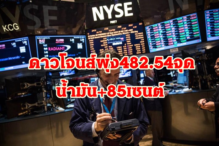 หุ้นดาวโจนส์ปิดพุ่ง 482.54 จุด ด้านราคาน้ำมันบวก 85 เซนต์ ขณะที่ทองคำเพิ่มขึ้น 1.4ดอลลาร์