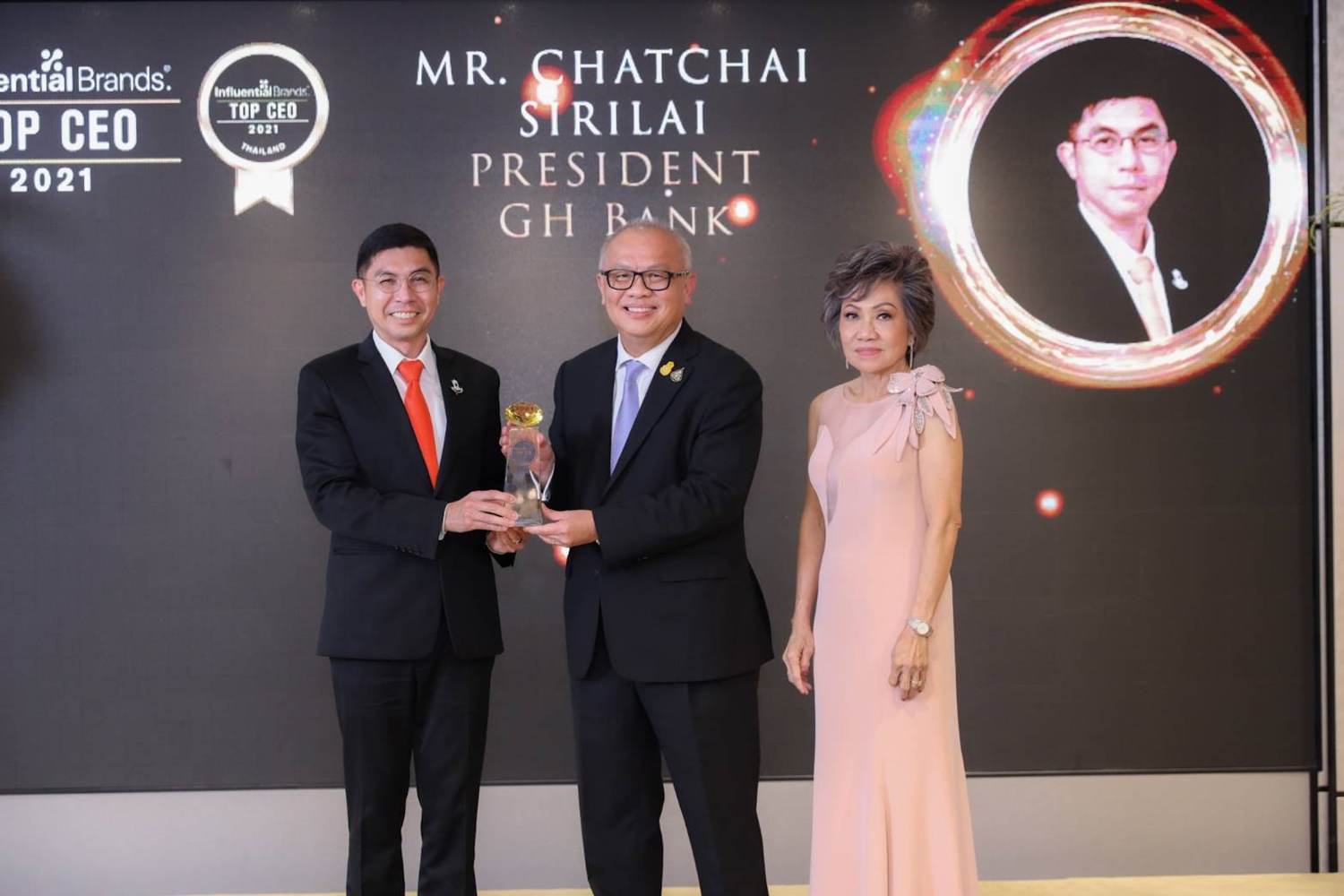 นายฉัตรชัย ศิริไล กรรมการผู้จัดการ ธนาคารอาคารสงเคราะห์ (ธอส.) เข้ารับรางวัล “Thailand's Top CEO Awards 2021" จากนายสุพัฒนพงษ์ พันธ์มีเชาว์ รองนายกรัฐมนตรี และรัฐมนตรีว่าการกระทรวงพลังงาน ประธานในพิธีมอบรางวัลในงาน “2021 ASIA CEO SUMMIT & AWARD CEREMONY : Asia’s Champions of Excellence" ซึ่งจัดขึ้นโดย บริษัท นิโอ ทาร์เก็ต จำกัด และบริษัท อินฟลูเอ็นเชี่ยลแบรนด์ ประเทศสิงคโปร์ องค์กรที่มีความเชี่ยวชาญด้านการสร้างแบรนด์ในเอเชียมายาวนานกว่า 20 ปี เพื่อมอบรางวัลให้แก่แบรนด์ที่มีอิทธิพลต่อผู้บริโภค ผู้นำธุรกิจที่โดดเด่น