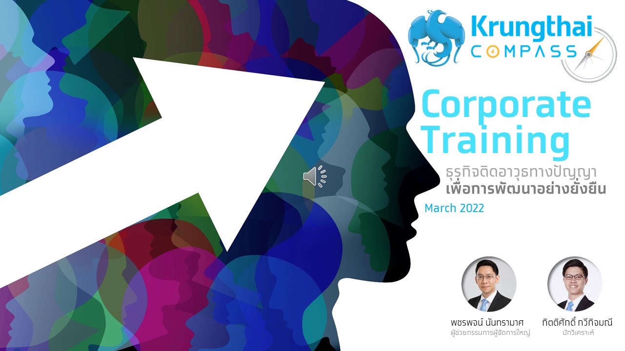 ศูนย์วิจัย Krungthai COMPASS ฉายภาพ แรงกดดันจากปัญหาด้านทักษะแรงงานและสังคมสูงอายุ ทำให้ประเทศไทยจำเป็นต้องยกระดับศักยภาพแรงงานเร่งด่วน โดยเฉพาะในภาวะที่องค์กรธุรกิจเผชิญปัจจัยท้าทายจากเมกะเทรนด์โลก ชี้ธุรกิจฝึกอบรม (Corporate training) นับเป็นตัวช่วยที่สำคัญ แต่ก็ต้องปรับกลยุทธ์เพื่อตอบสนองความต้องการพัฒนาทักษะของลูกค้าได้อย่างมีประสิทธิภาพ นำไปสู่ผลลัพธ์ที่ดีขึ้นขององค์กร ตลอดจนช่วยเสริมภูมิคุ้มกันให้แรงงานของไทยมีความเข้มแข็ง สามารถรับมือกับการเปลี่ยนแปลงพลิกผันที่อาจเกิดขึ้นในอนาคต และตอบโจทย์การพัฒนาอย่างยั่งยืน