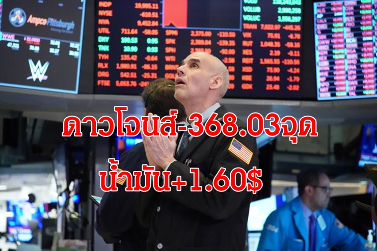 หุ้นดาวโจนส์ปิดร่วง 368.03 จุด หลังพาวเวลส่งสัญญาณขึ้นดอกเบี้ย 0.5% ด้านราคาน้ำมันพุ่ง 1.60 ดอลลาร์ ขณะที่ทองคำร่วง7.40 ดอลลาร์