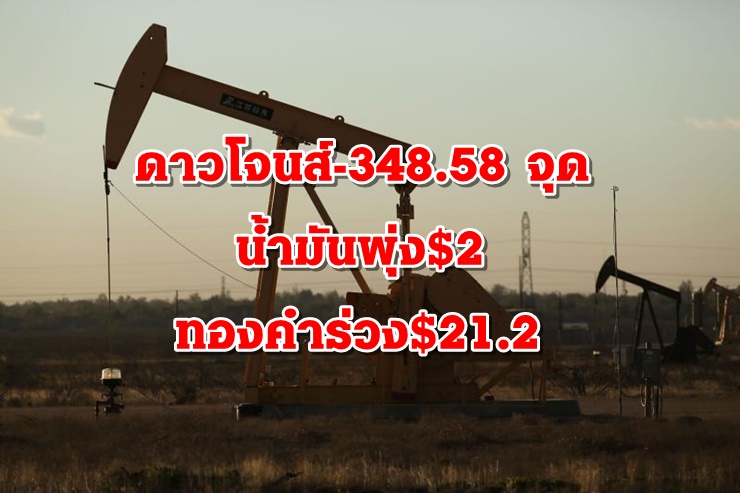 หุ้นดาวโจนส์ปิดลบ 348.58 จุด ด้านราคาน้ำมันพุ่งขึ้น 2 ดอลลาร์ ขณะที่ทองคำร่วง 21.2 ดอลลาร์