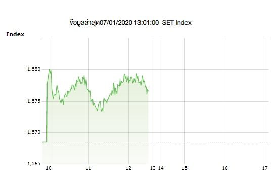 หุ้นไทย7ม.ค.63ปิดภาคเช้าบวก8จุด