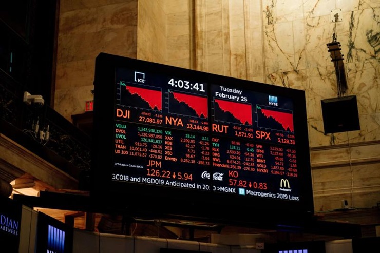ดัชนีดาวโจนส์ตลาดหุ้นนิวยอร์กปิดร่วงลงต่อเนื่องเป็นวันที่ 4 เมื่อคืนนี้ (25 ก.พ.) โดยทั้งดัชนีดาวโจนส์ และ เอสแอนด์พี 500 ดิ่งลงมากกว่า 3% หลังจากเจ้าหน้าที่ระดับสูงของศูนย์ควบคุมและป้องกันโรคแห่งสหรัฐ (CDC) ได้ออกมาเตือนให้ชาวอเมริกันเตรียมพร้อมรับมือกับไวรัสโคโรนาสายพันธุ์ใหม่ (โควิด-19) ที่อาจแพร่ระบาดอย่างหนักในสหรัฐ ซึ่งความเคลื่อนไหวดังกล่าวทำให้นักลงทุนวิตกกังวลมากขึ้นเกี่ยวกับผลกระทบของการแพร่ระบาด ขณะที่รายงานล่าสุดระบุว่าขณะนี้ไวรัสโควิด-19 กำลังลุกลามไปยังหลายประเทศ ซึ่งรวมถึงสวิตเซอร์แลนด์
