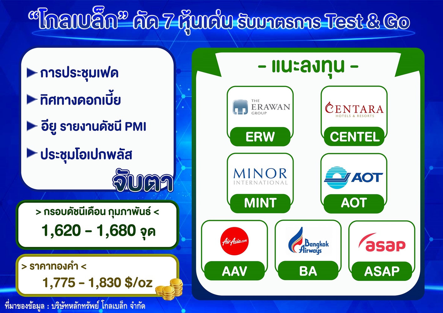 “โกลเบล็ก” คัดหุ้น 7 หุ้นเด่นรับมาตรการ Test & Go