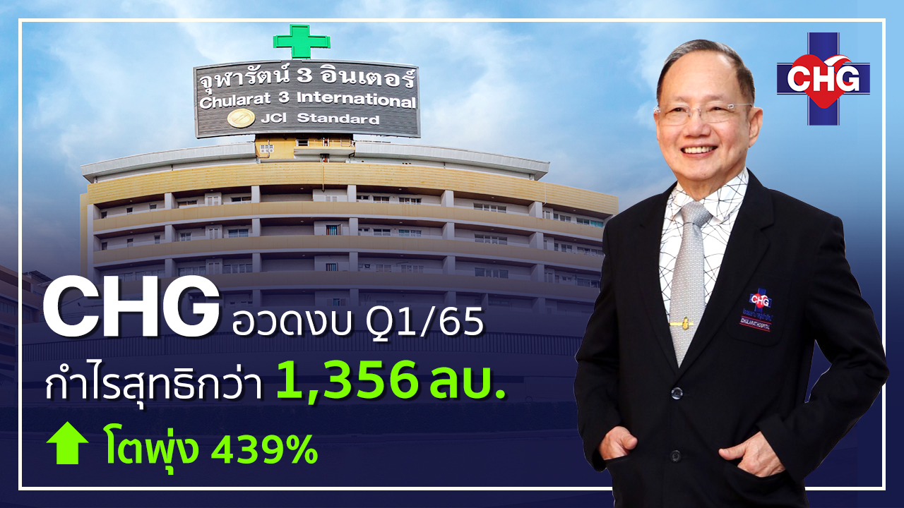 นายแพทย์กำพล พลัสสินทร์ ประธานกรรมการบริหาร บริษัท โรงพยาบาลจุฬารัตน์ จำกัด (มหาชน) หรือ CHG เปิดเผยว่า ผลการดำเนินธุรกิจของบริษัทในช่วงไตรมาส 1 ปี 2565 มีรายได้จากการประกอบกิจการโรงพยาบาล อยู่ที่ 3,571.4 ล้านบาท ปรับเพิ่มขึ้น 2,156.6 ล้านบาท หรือ 152% เมื่อเทียบกับไตรมาส 1/2564 อยู่ที่ 1,414.8 ล้านบาท และกำไรสุทธิในไตรมาส 1/2565 อยู่ที่ 1,356.4 ล้านบาท เพิ่มขึ้น 1,104.6 ล้านบาท หรือ 439% เมื่อเทียบกับไตรมาส 1/2564 อยู่ระดับ 251.78 ล้านบาท