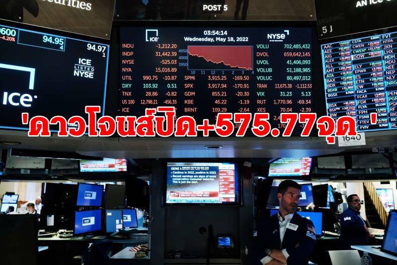 คลายกังวลเงินเฟ้อ ดาวโจนส์ปิด+575.77จุด