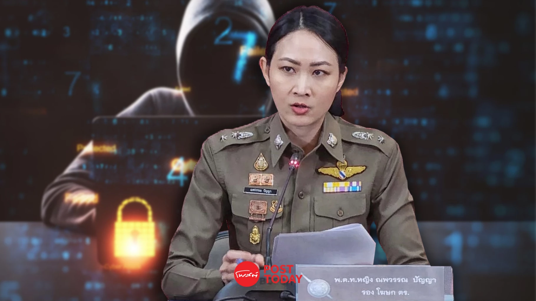 พ.ต.ท.หญิง ณพวรรณ ปัญญา รองโฆษกสำนักงานตำรวจแห่งชาติ เผย 3 อุบาย โจรออนไลน์ หลอกลวงประชาชนให้ติดตั้งโปรแกรมควบคุมระบบในเครื่องโทรศัพท์ ดูดเงินในบัญชี