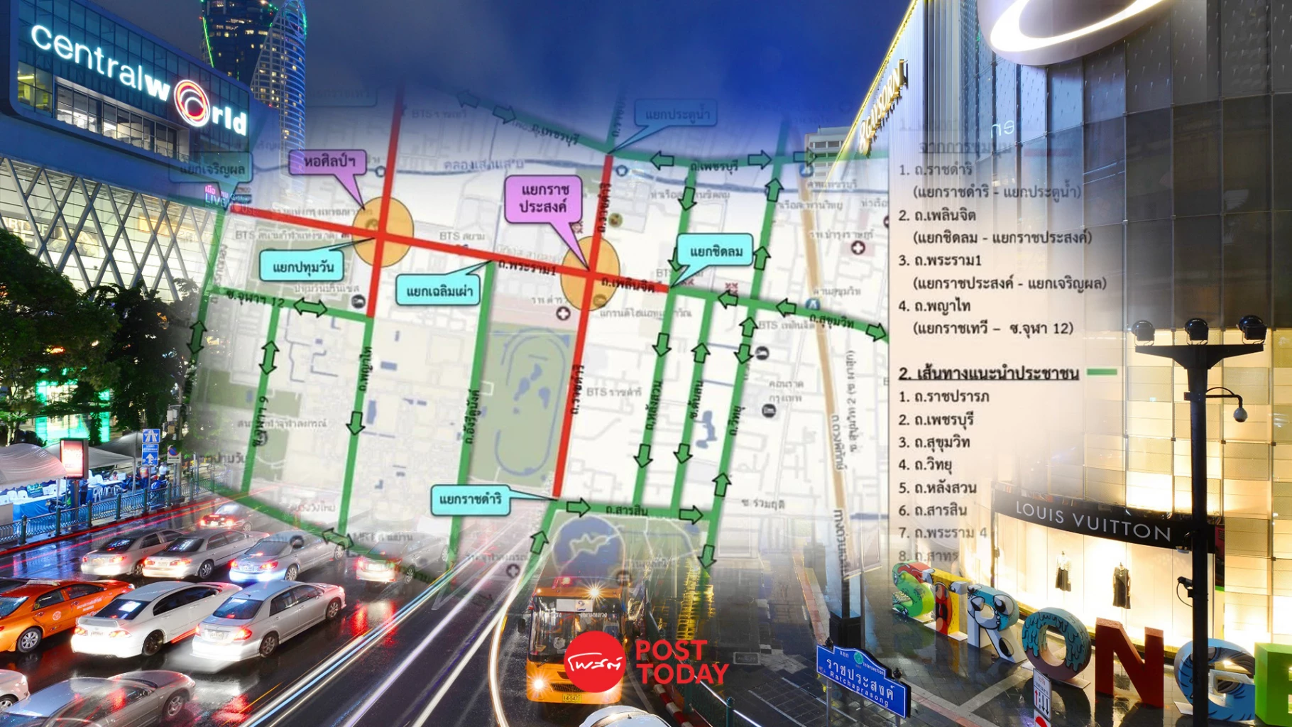 แนะหลีกเลี่ยงเส้นทางเดินขบวนแยกปทุมวัน - แยกราชประสงค์ ชุมนุมวันนี้ 14 ส.ค.