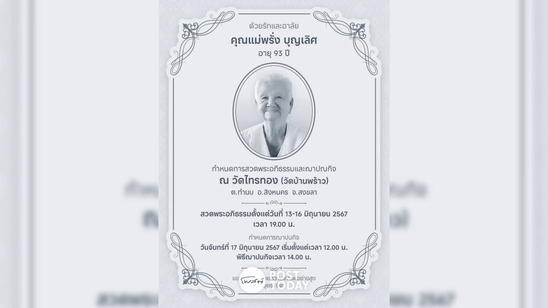ขอแสดงความอาลัยคุณแม่พรั่ง บุญเลิศ เผยกำหนดการสวดพระอภิธรรม-พิธีฌาปนกิจ