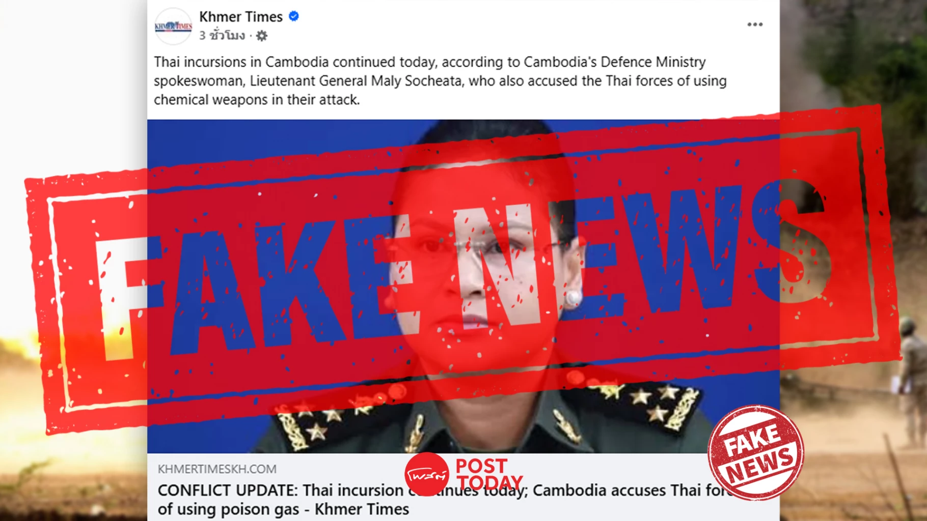 กองทัพไทยขอปฏิเสธอย่างเด็ดขาดต่อคำกล่าวอ้างของ พลโทหญิง มาลี โสเจียตา โฆษกกระทรวงกลาโหมกัมพูชา ที่ระบุว่ากองทัพไทยได้รุกล้ำดินแดนกัมพูชาและใช้อาวุธเคมีในการปฏิบัติการทางทหาร ซึ่งเป็นข้อกล่าวหาที่ไม่มีมูลความจริง และเป็นการบิดเบือนข้อมูลอย่างร้ายแรง