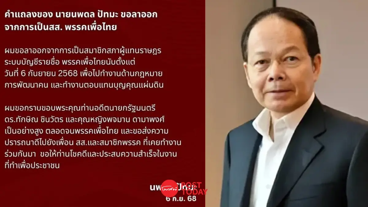 นพดล ปัทมะ ลาออก ส.ส.บัญชีรายชื่อเพื่อไทย หันทำงานกฎหมาย
