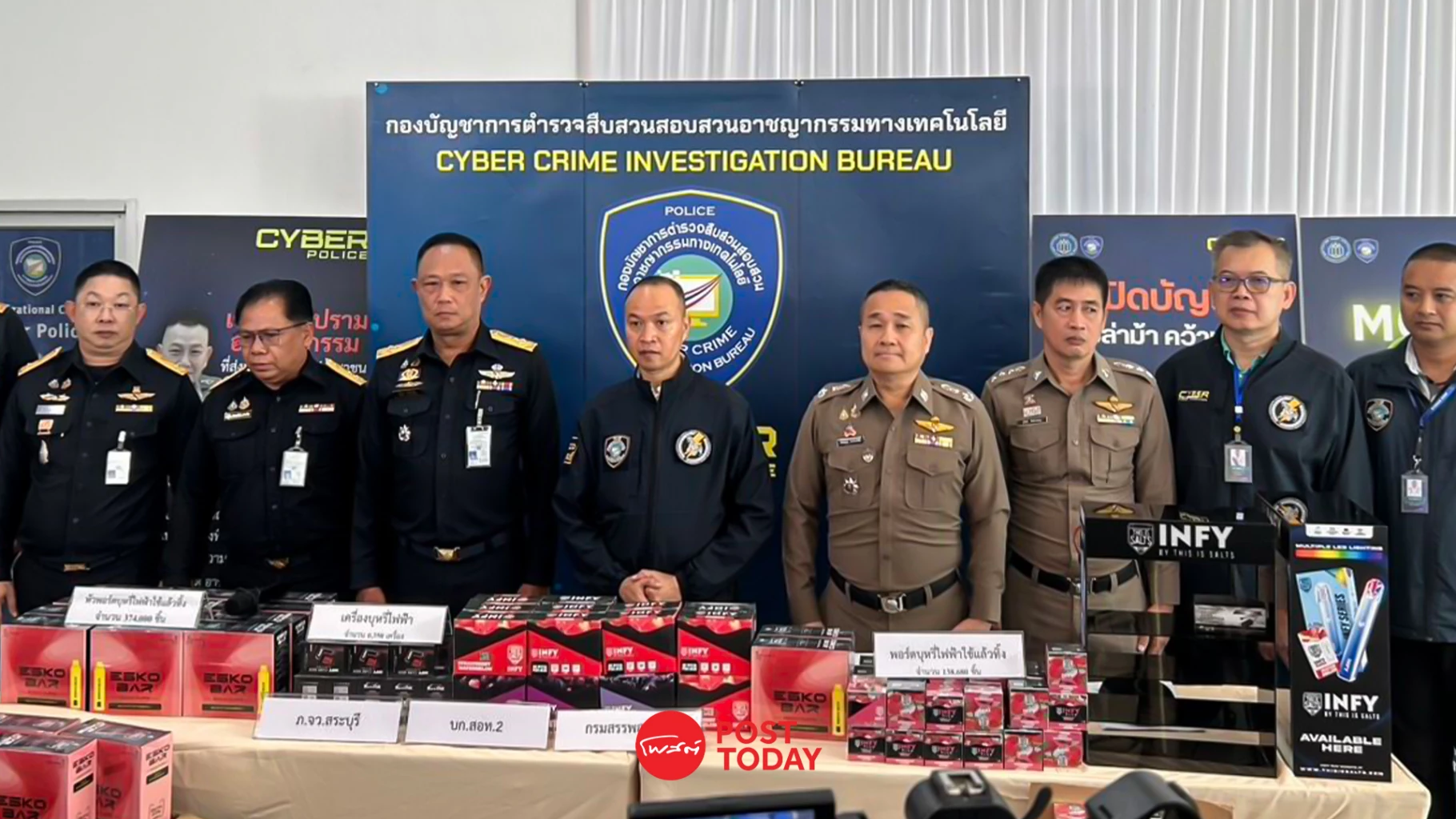 ตำรวจไซเบอร์ ร่วมสรรพสามิต ฝ่ายปกครอง และ สภ.วิหารแดง ยึด "บุหรี่ไฟฟ้าล็อต" มโหฬารกว่า 5.6 แสนชิ้น! รวมมูลค่ากว่า 90 ล้านบาท