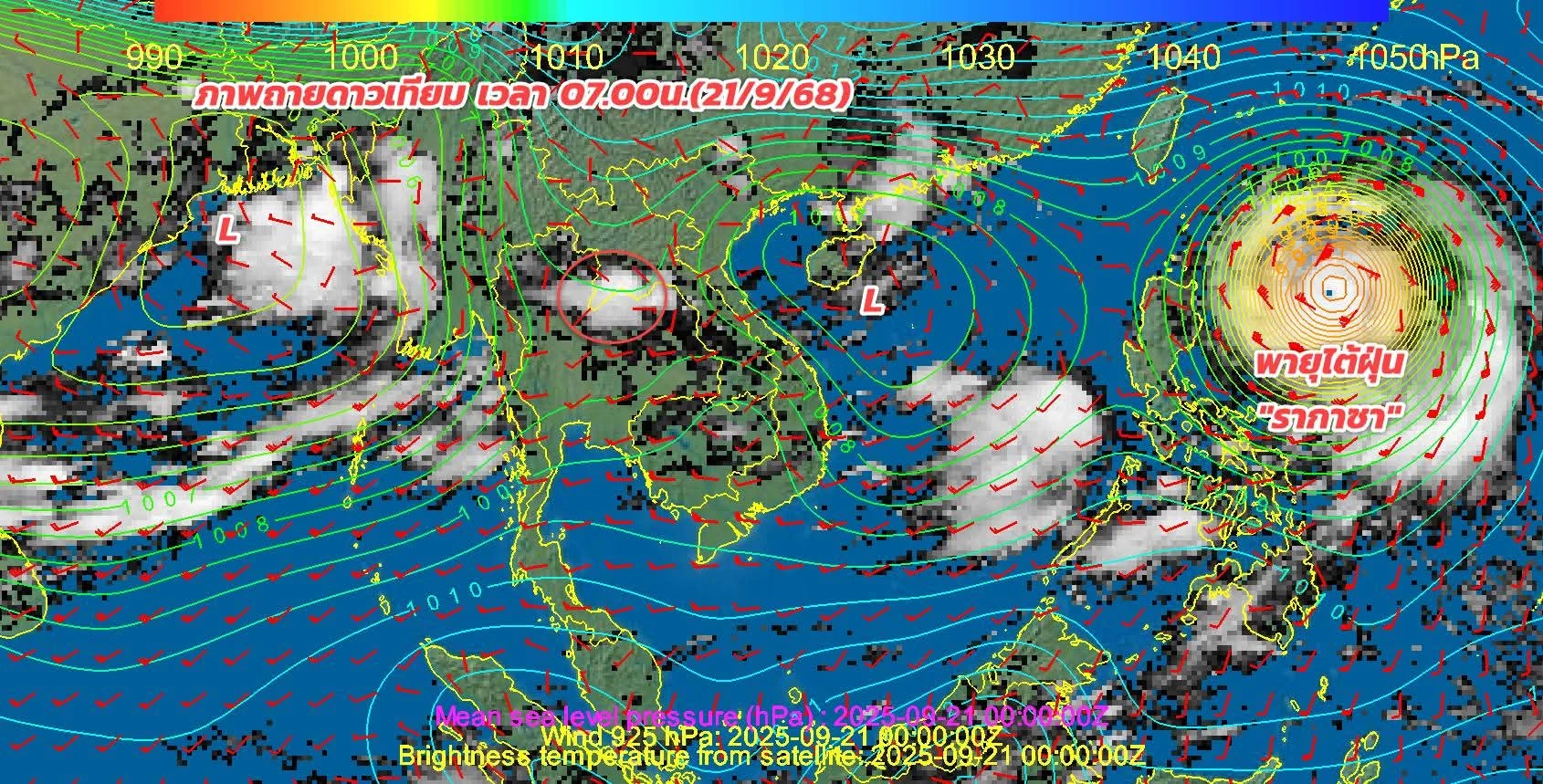 21 ก.ย.2568 กรมอุตุนิยมวิทยา รายงานสถานการณ์พายุไต้ฝุ่น “รากาซา(RAGASA)” บริเวณด้านตะวันออกของประเทศฟิลิปปินส์ กำลังเคลื่อนตัวทางตะวันตกเฉียงเหนือ มีแนวโน้มจะเคลื่อนลงสู่ทะเลจีนใต้ในวันพรุ่งนี้ (22 ก.ย.68)