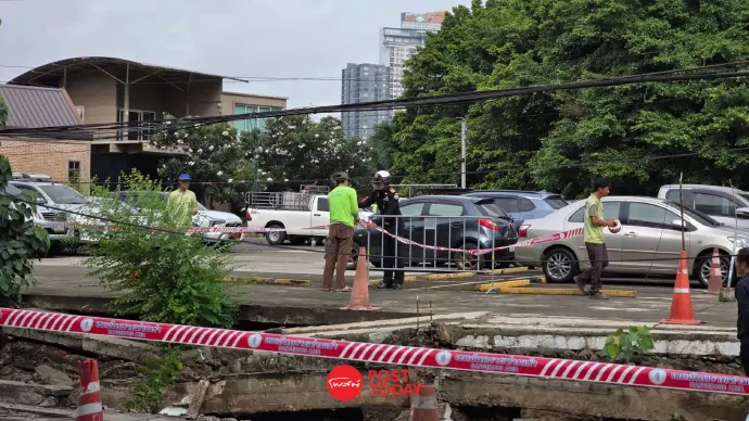 กทม.เกิดหลุมยุบหน้าการไฟฟ้ายานนาวา ยาว 26 เมตร ปิด 2 ช่องจราจร
